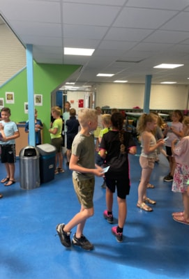 Vandaag woordenschat geoefend met mix en ruil. Kinderen komen elkaar tegen, geven high five, en laten elkaar hun kaartje zien. Ze moeten de betekenis van het woord uitleggen. Wanneer dit goed is ruilen ze van kaartje met woord en uitleg en gaan ze naar de volgende.