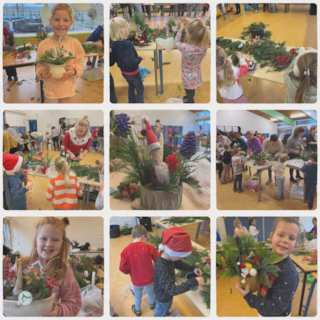 Wat een mooie kerststukjes zijn er gemaakt! Ouders en opa’s en oma’s: bedankt voor jullie hulp en het kerstgroen!